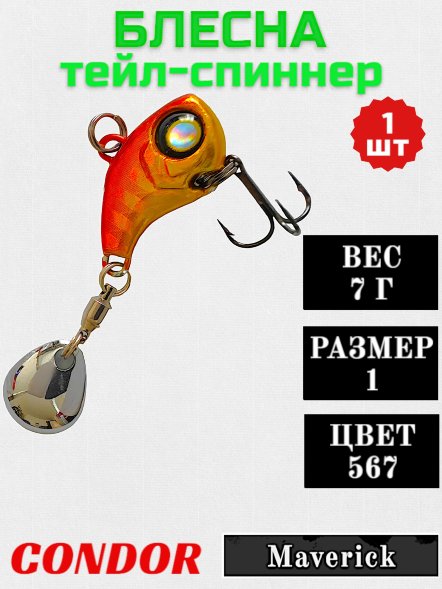 Часто задаваемые вопросы про товар "Тейл-спиннер CONDOR MAVERICK, вес 7 гр цвет 567":